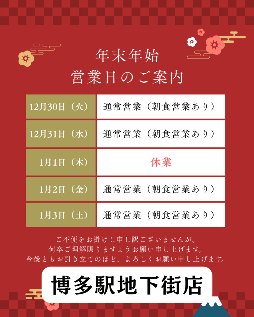 【三陽食堂】2025→2026年末年始営業スケジュールにつきまして